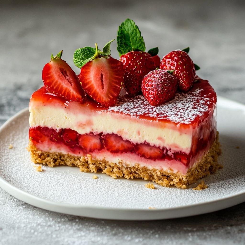 → Strawberries bring color and juicy sweetness that complements the creamy filling. Slice just before assembly to prevent color bleed, and arrange in an even layer or fold a few pieces into the batter for pockets of berry sweetness. For sweeter berries, maceration with a teaspoon of sugar can intensify the flavor. - – 2 tablespoons granulated sugar