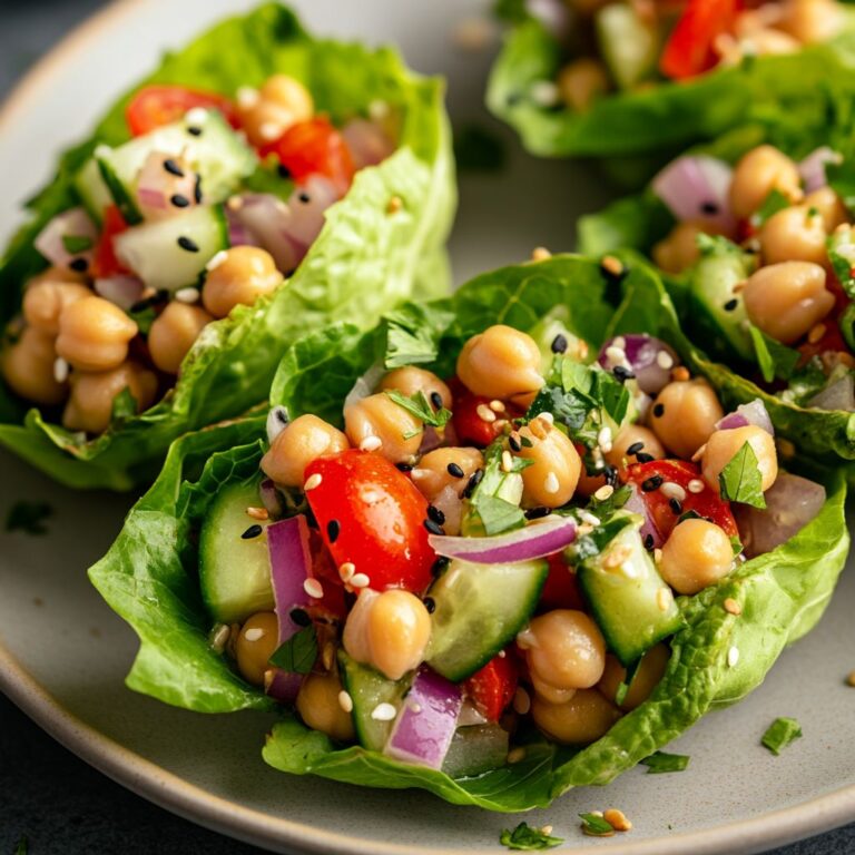 So why not take a culinary adventure today? Dive into the colorful world of chickpeas and vegetables encapsulated in crisp lettuce, and discover how simple ingredients can transform into a beautiful and nourishing experience. With every bite, allow yourself to be transported to a place of flavor and health—your taste buds and body will thank you for this delectable journey. Enjoy creating and savoring these delightful Mini Chickpea Salad Lettuce Cups; they are sure to become a quick favorite in your household!