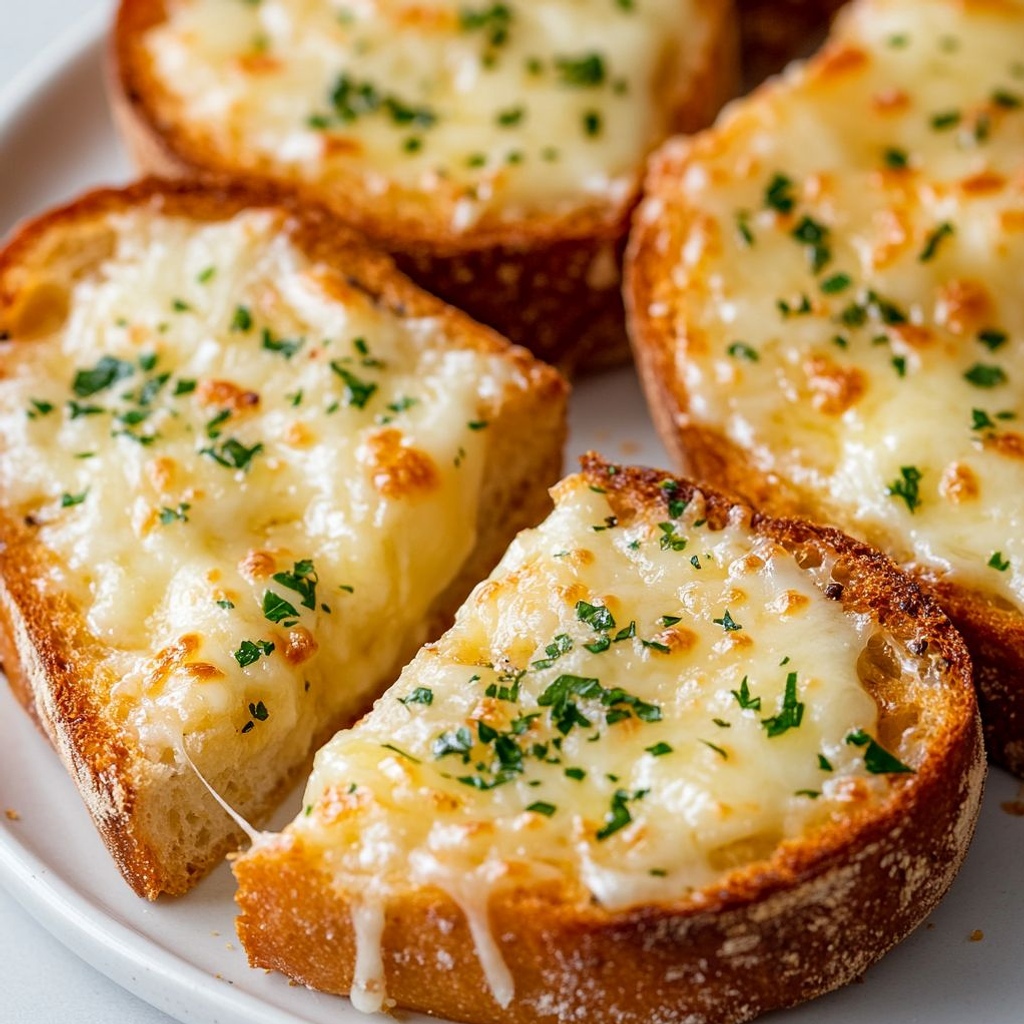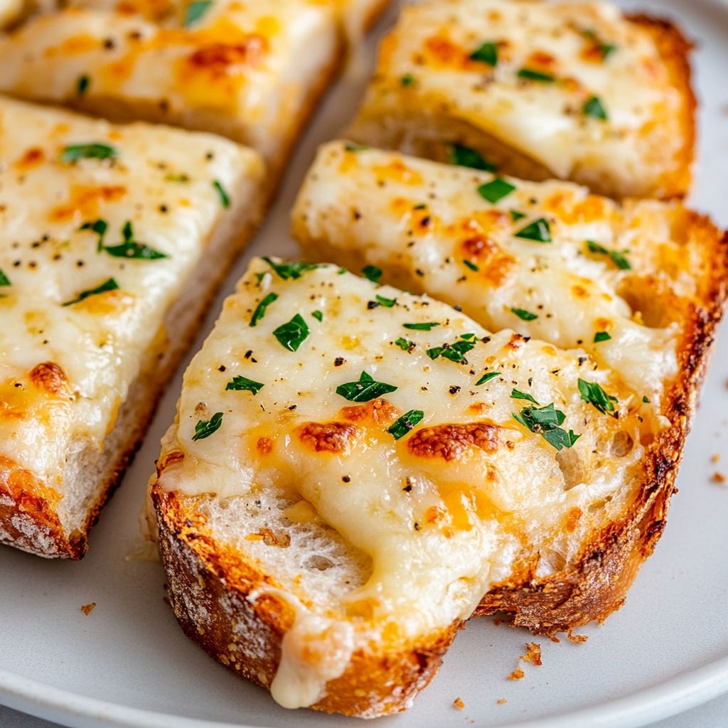 → Pressing minimizes shifting during baking and promotes close contact between cheese and bread for an even melt and golden crust. - If desired, sprinkle 1/4 cup chopped fresh parsley over the assembled halves before baking for color and brightness, or reserve for garnish after baking.